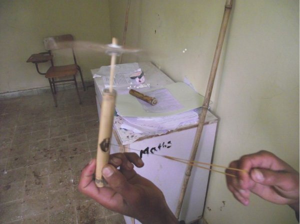 8. Pull the string, the stick should turn easily. If it is stiff to start there is possibly too much string.